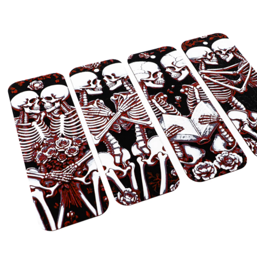 İki iskelet figürünün tutkuyla birbirine sarıldığı bu gotik detaylar, derin bir aşk hikâyesini yansıtırken, özellikle fantastik, korku veya klasik romanları okumayı sevenler için eşsiz bir atmosfer oluşturur. Yüksek kaliteli malzeme ile üretilen ayraç, kitap sayfalarınızı yıpratmaz, kolayca kaymaz ve şık bir şekilde kitap arasında yerini korur.Sıradan ayraçlardan sıkılanlar ve kitap okuma ritüeline kendine özgü bir dokunuş katmak isteyenler için idealdir. Kütüphanenize karakter katmak veya sevdiklerinize anlamlı bir hediye sunmak için harika bir seçimdir.